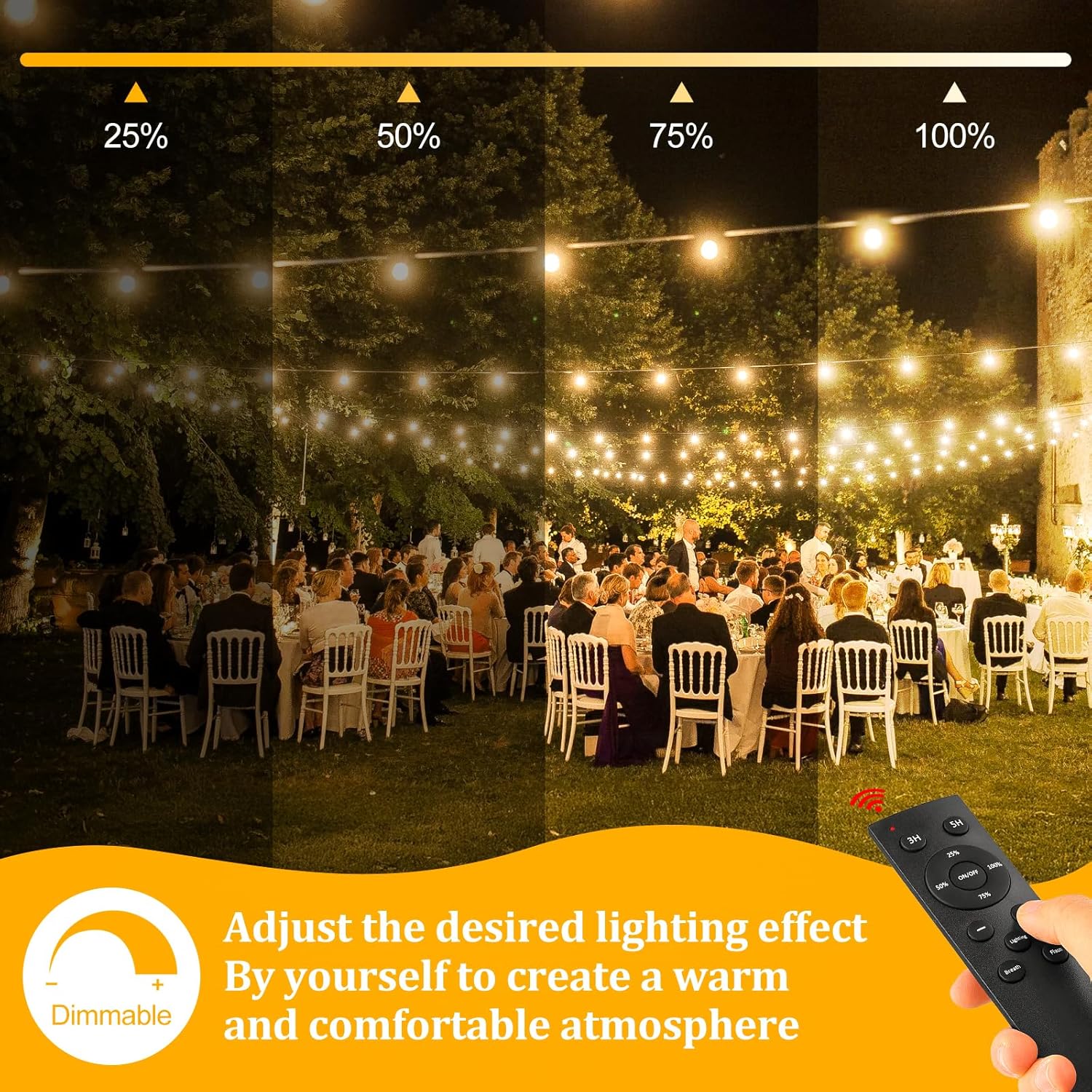 - WITH 4 ADJUSTABLE BRIGHTNESS LEVELS: The dimmable festoons lights let you customize the lighting to fit your needs. Whether for a romantic dinner or lively celebration, you can easily dim or brighten the lights for any occasion. This flexibility enhances your outdoor space’s aesthetic and promotes energy efficiency by using just the right amount of light