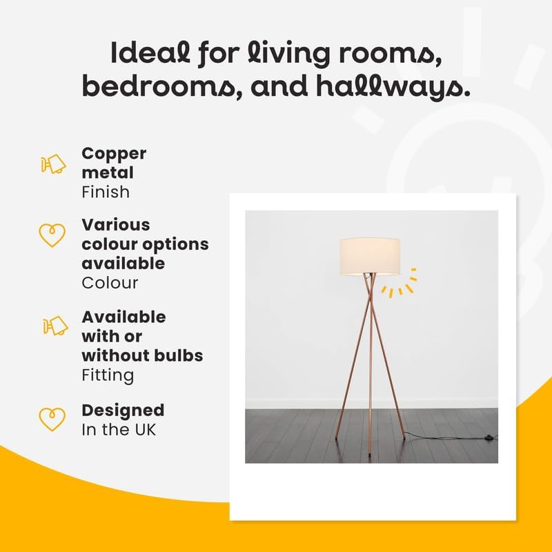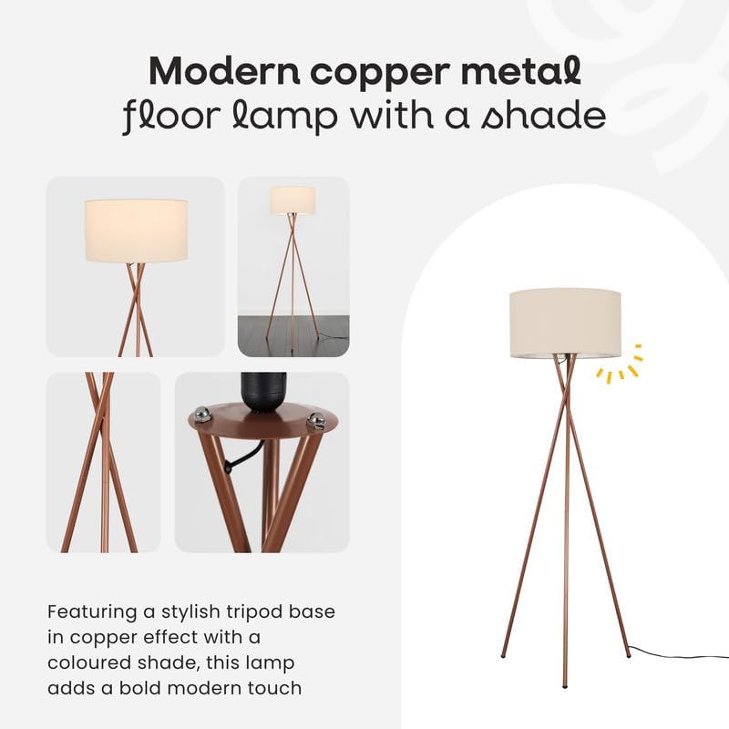 FLOOR LAMP – Update your living space with the latest trends in lighting with this Modern Copper Metal Floor Lamp with a Beige Shade. Mixing quality materials and stylish designs, our range of products are perfect for adding a modern style to your home.