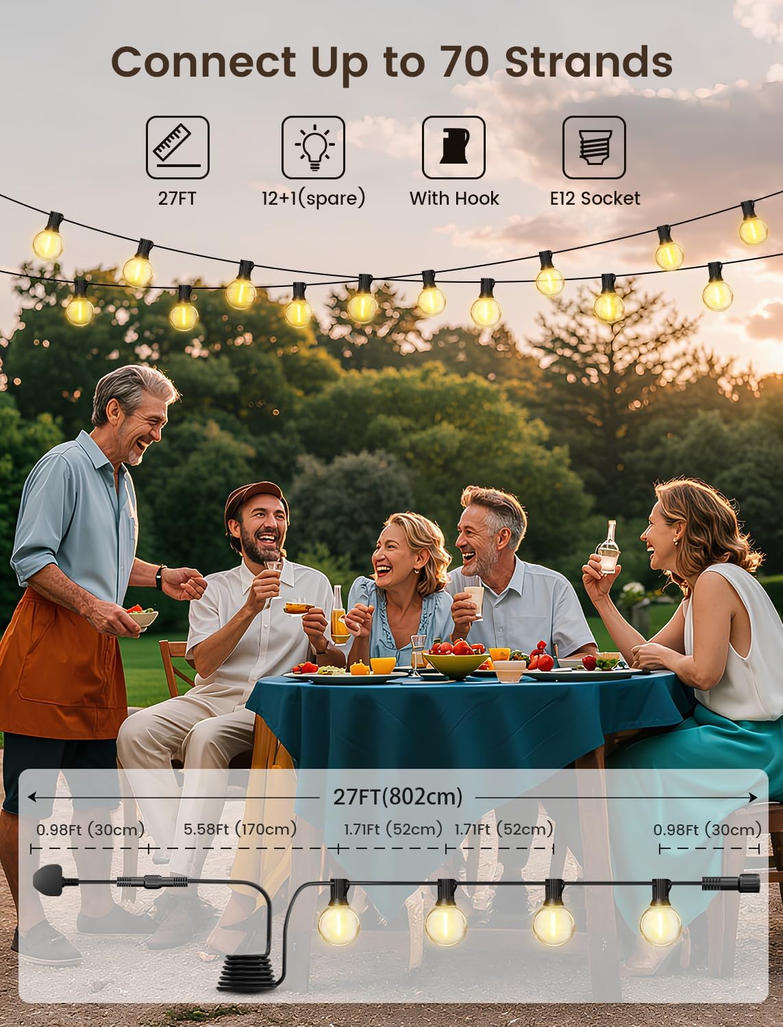 š” ćExpandable & Easy Installć Create expansive garden displays! These festoon lights outdoor feature end-to-end connectivity* (link up to 70 sets, total 1890ft). Each outdoor light has integrated hooks for tool-free shaping around trees or railings. *Compatibility note: Connect only with Torkase garden string lights.