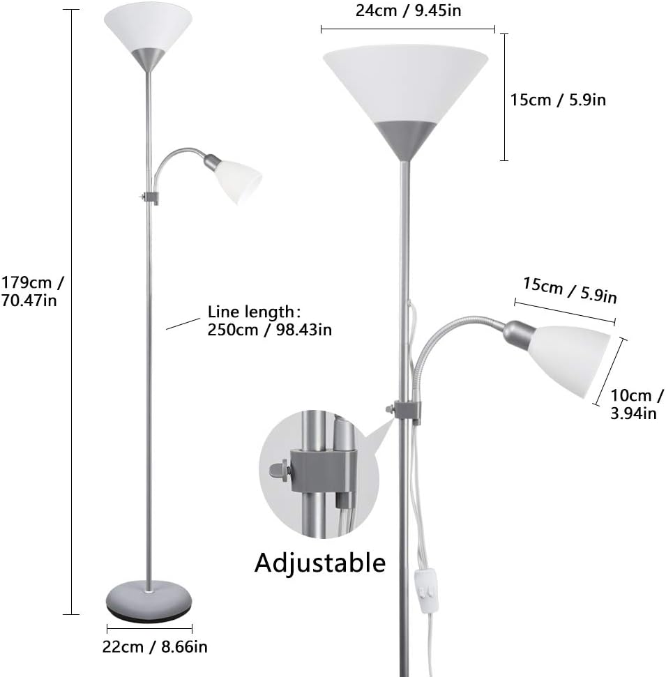• 【Standard UK E27 Bulb&E14 Base】Our standing lamp adopts with standard E27 up lamp holder and E14 side lamp holder, high safety and long service life. They can be installed respectively with a variety of E27&E14 light sources, easy to replace and easy to install.(Please note that, the bulb is not including)